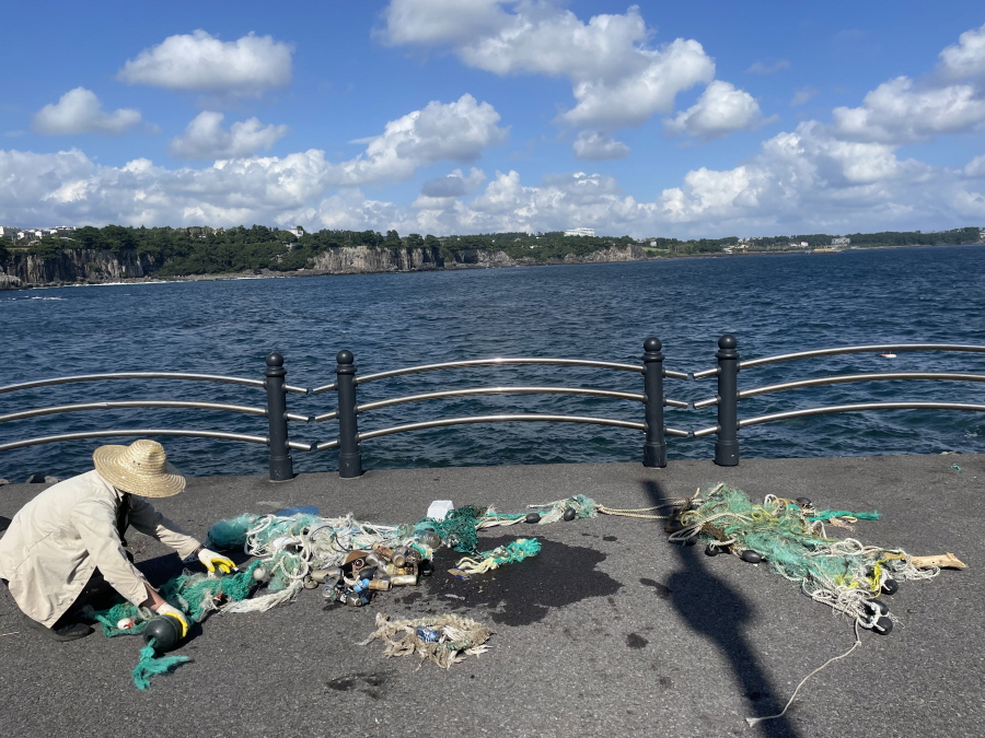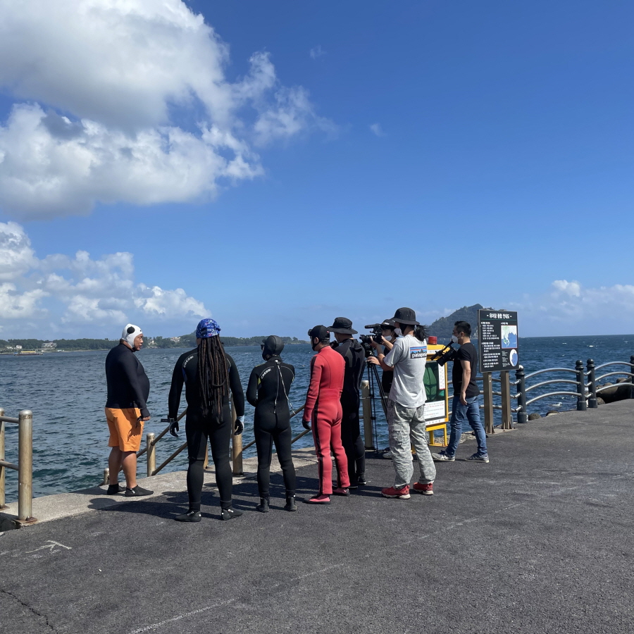 예술인들이 직접 바닷 속에 버려진 침적 해양쓰레기, 폐어구, 스티로품등을 수거하는 수중정화활동 진행하고