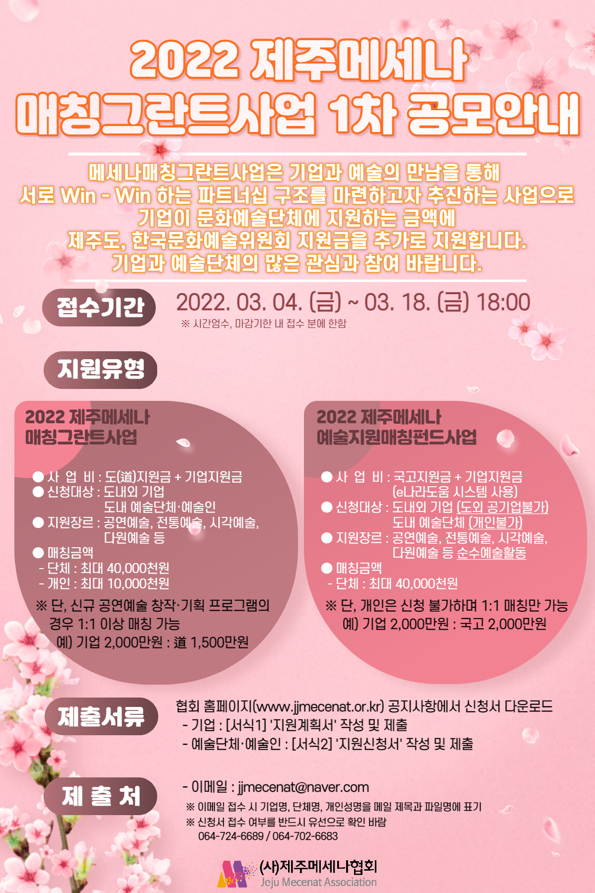 2022 제주메세나매칭그란트사업 지원신청 안내(도/국고)
