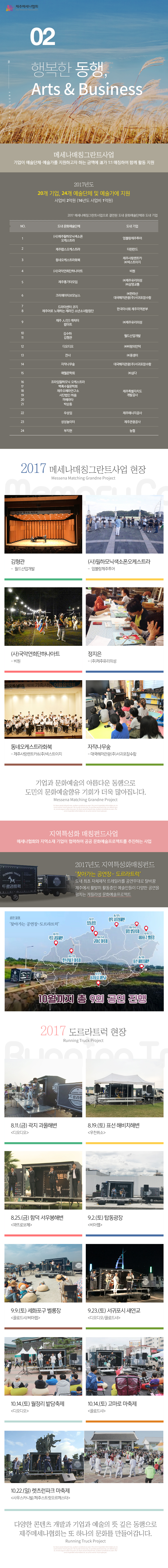 사단법인 제주메세나협회 주소 : 제주특별자치도 제주시 청사로1길 18-4, 1층 고유번호 : 232-82-00336 Tel. 064-724-6689 Fax. 070-8900-6680