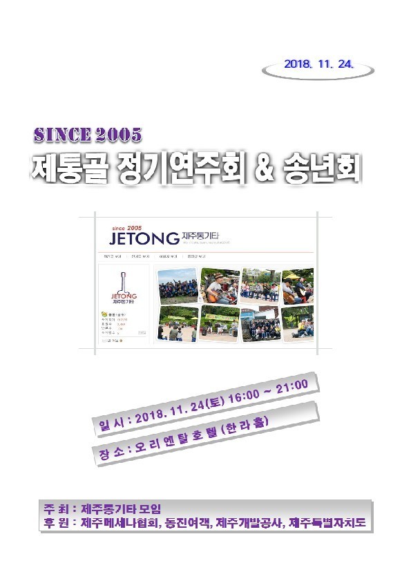 [매칭그란트]제주통기타모임 정기연주회 & 송년회에 여러분을 초대합니다. 2018.11.21 | 메세나협회